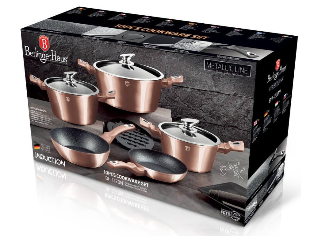 - Výjimečná sada nádobí z kolekce Metallic Line zaujme nejen nepřehlédnutelným moderním designem, ale především svými jedinečnými vlastnostmi- doménou této sady je 3vrstvý povrch s mramorovým designem charakteristický svou dokonalou nepřilnavostí, žádné potraviny se nepřipalují a díky tomu se kastroly i pánve velice snadno čistí