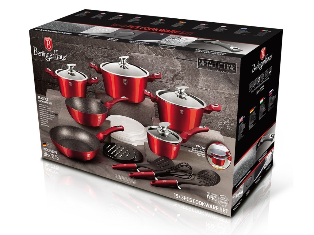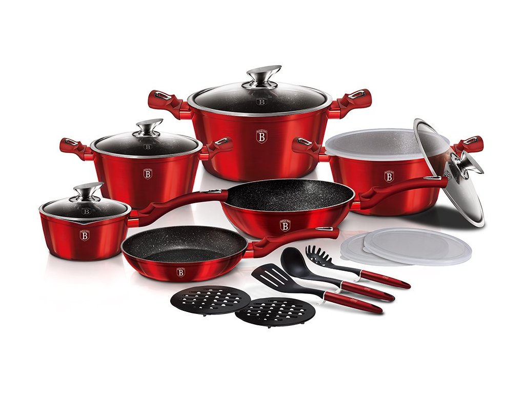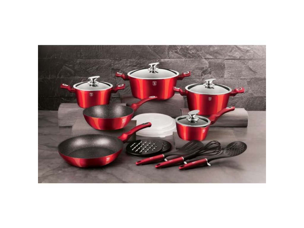 Hledáte vhodnou sadu nádobí do vaší kuchyně? Sadou získáte všechny potřebné nádoby na vaření, ať už budete vařit pro sebe nebo pro více osob. Velkou výhodou je, že můžete objednat najednou více nádobí od ověřeného výrobce BERLINGERHAUS. Sadu nádobí sjednocuje jednotný design, navíc červená barva celé sady je univerzální a vyjímat se bude v každé kuchyni.