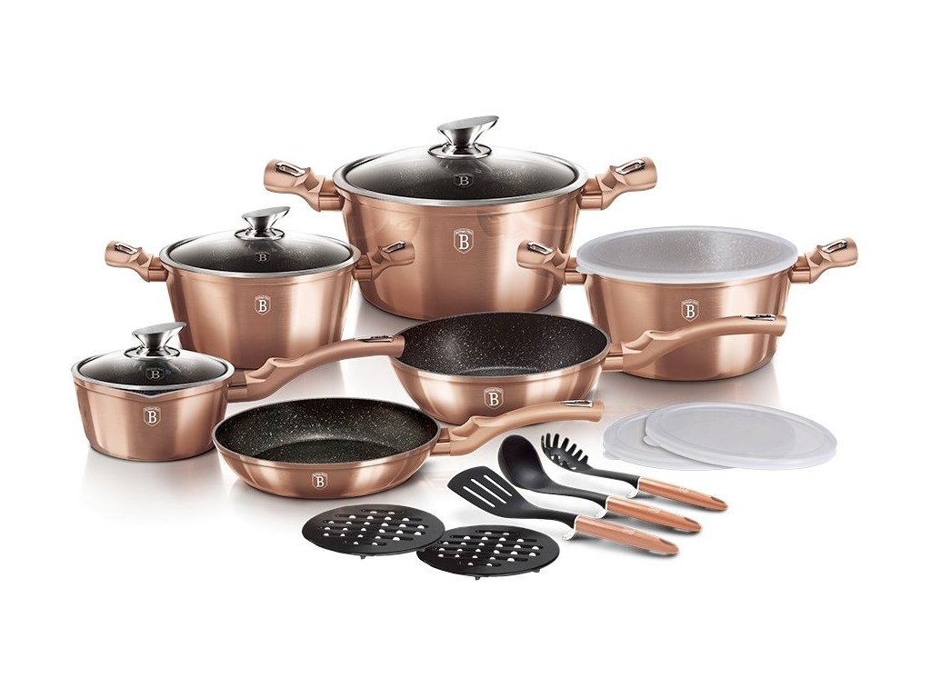 BERLINGERHAUS Sada nádobí s mramorovým povrchem 18 ks Rosegold Metallic Line BH-7034