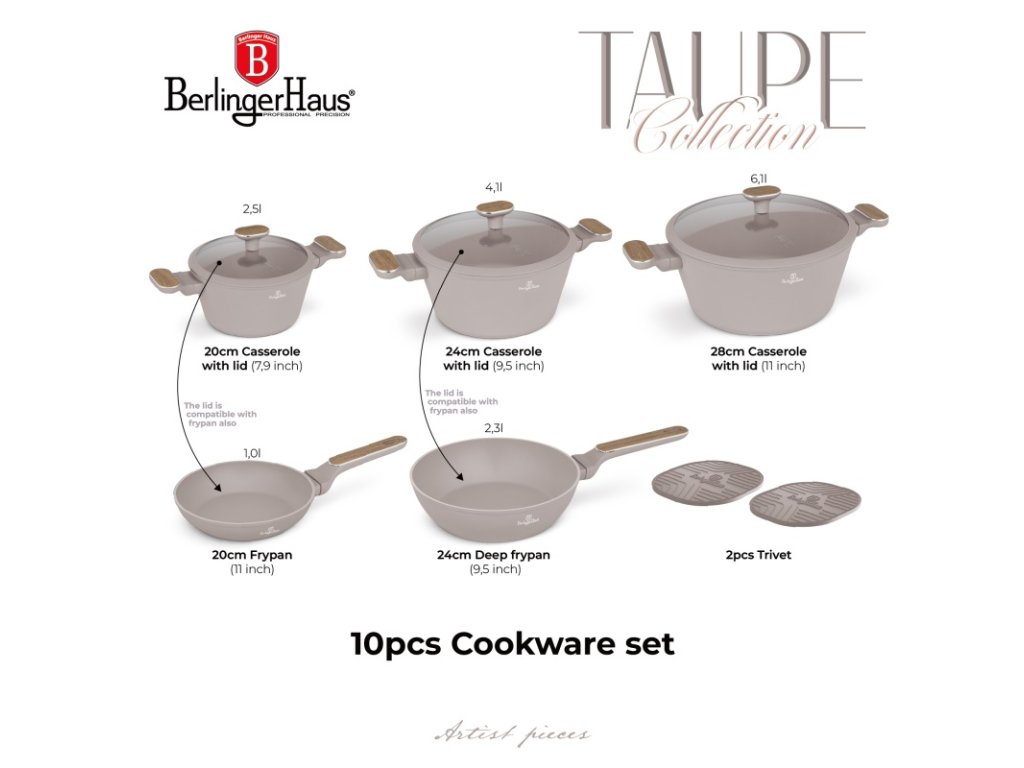 Sada nádobí 10 ks BERLINGERHAUS BH-8323 Taupe Nordic Collection – Klid severu. Hřejivost domova.