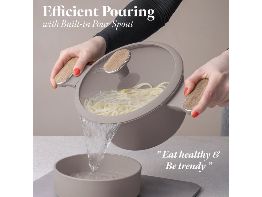 Třívrstvý titanový povrch je navržen tak, aby vydržel každodenní výzvy. Nelepí, nepřipaluje, snadno se čistí a přitom neobsahuje škodliviny – pro zdravější a pohodlnější vaření.