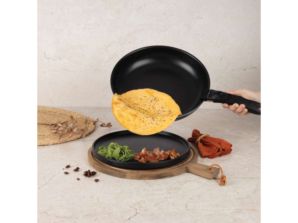 • Materiál: silnostěnný hliník s nepřilnavým černým titanovým povlakem – pro perfektní tepelnou vodivost a snadnou údržbu