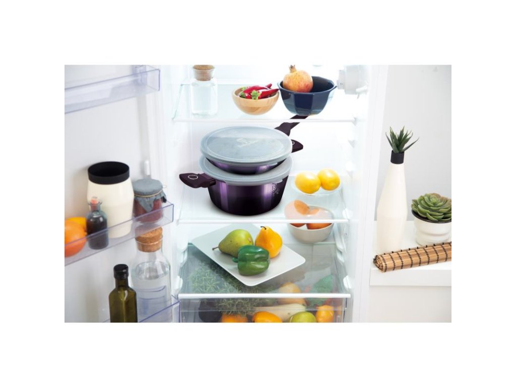 Bohatě vybavená sada nádobí z metalické fialové kolekce Purple Eclipse zaujme nejen nepřehlédnutelným moderním designem, ale především svými jedinečnými vlastnostmi. V sadě jsou navíc 3 praktická víčka, kterými lze nádoby uzavřít třeba při skladování v lednici.- doménou této sady je 3vrstvý nepřilnavý povrch s částicemi titanu, charakteristický svou dokonalou nepřilnavostí, žádné potraviny se nepřipalují a díky tomu se kastroly i pánve velice snadno čistí