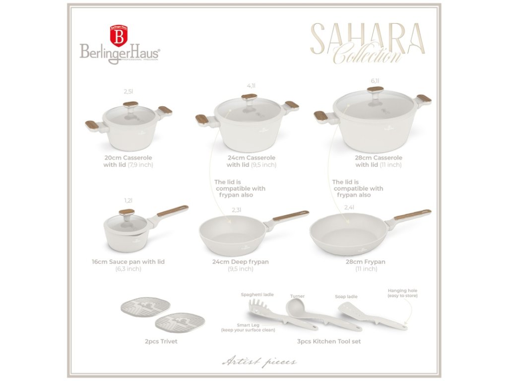 Sada nádobí s titanovým povrchem 15 ks Sahara Nordic Collection BERLINGERHAUS BH-8325