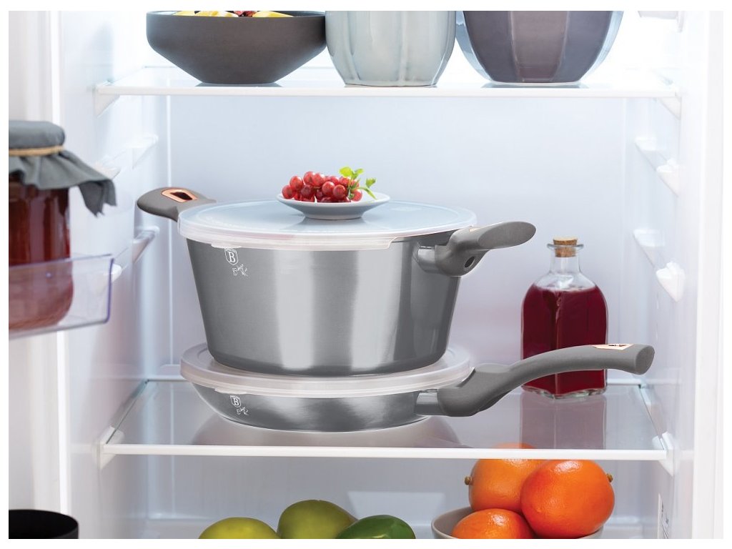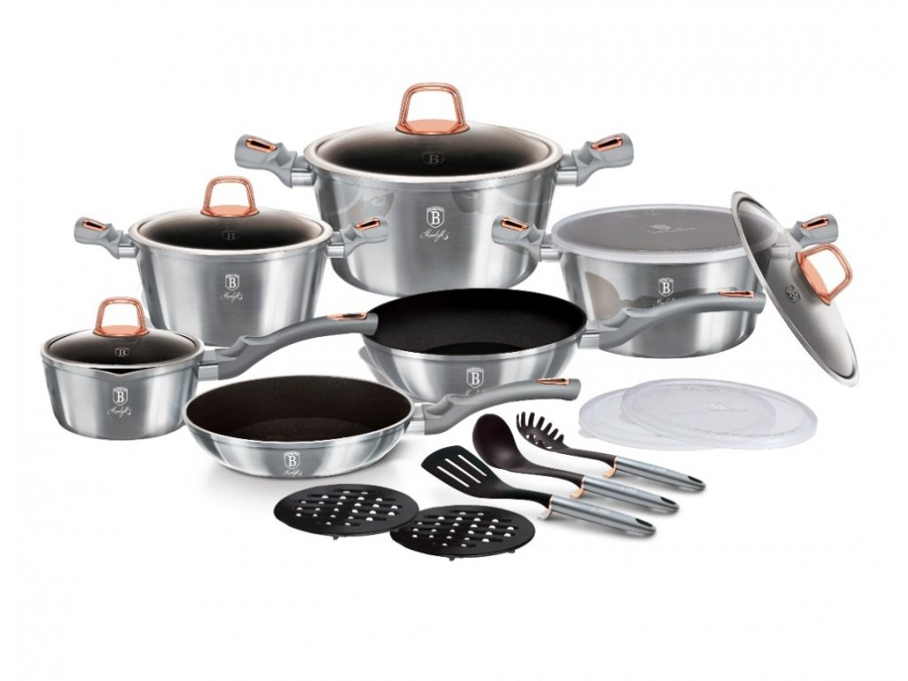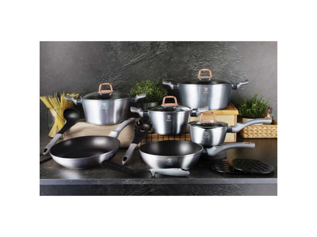 Hledáte vhodnou sadu nádobí do vaší kuchyně? Sadou získáte všechny potřebné nádoby na vaření, ať už budete vařit pro sebe nebo pro více osob. Velkou výhodou je, že můžete objednat najednou více nádobí od ověřeného výrobce BERLINGERHAUS. Sadu nádobí sjednocuje jednotný design, navíc šedá barva celé sady je univerzální a vyjímat se bude v každé kuchyni.