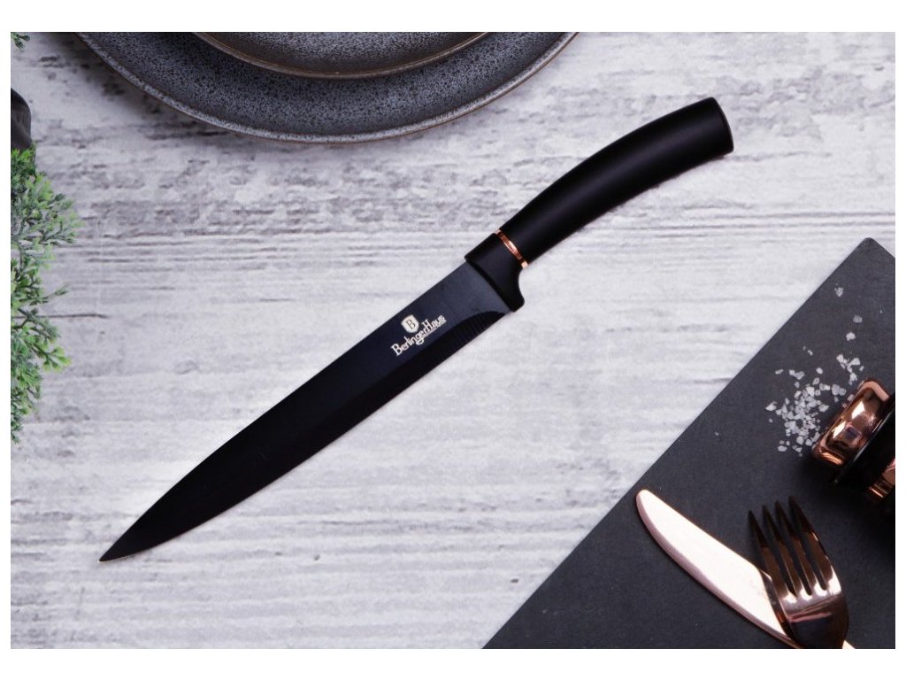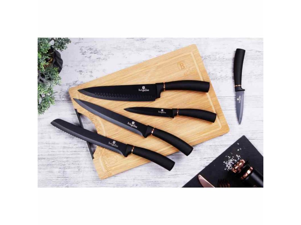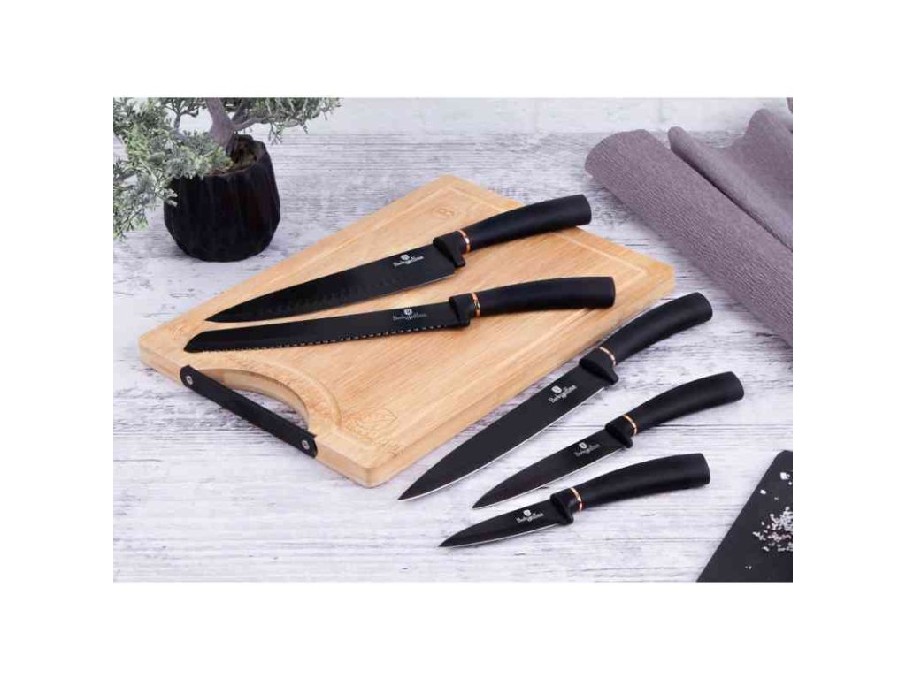 Sada nožů s nepřilnavým povrchem + prkénko 6 ks Black Rose Collection je výbornou alternativou pro kuchaře různých úrovní, na jejíž výrobu byl použit kvalitní materiál: nerez ocel s nepřilnavým povrchem, vynikají perfektní ostrostí čepele a designem. Velmi oceníte i ergonomicky tvarovanou rukojeť, díky které se vám nože budou skvěle držet. Celá sada je dílem výrobce BERLINGERHAUS, jež se výrobě nožů věnuje poměrně dlouho a jsou řádně odzkoušeny.