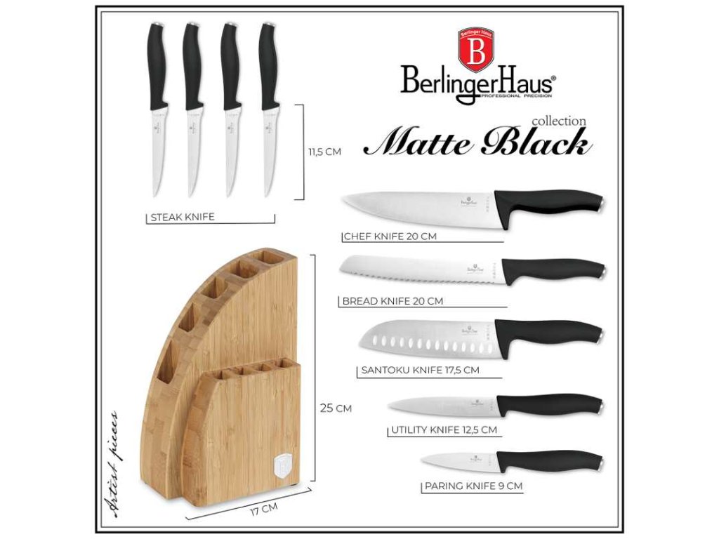 BERLINGERHAUS Sada nožů se stojanem BAMBOO 10 ks Matte Black Collection BH-2979