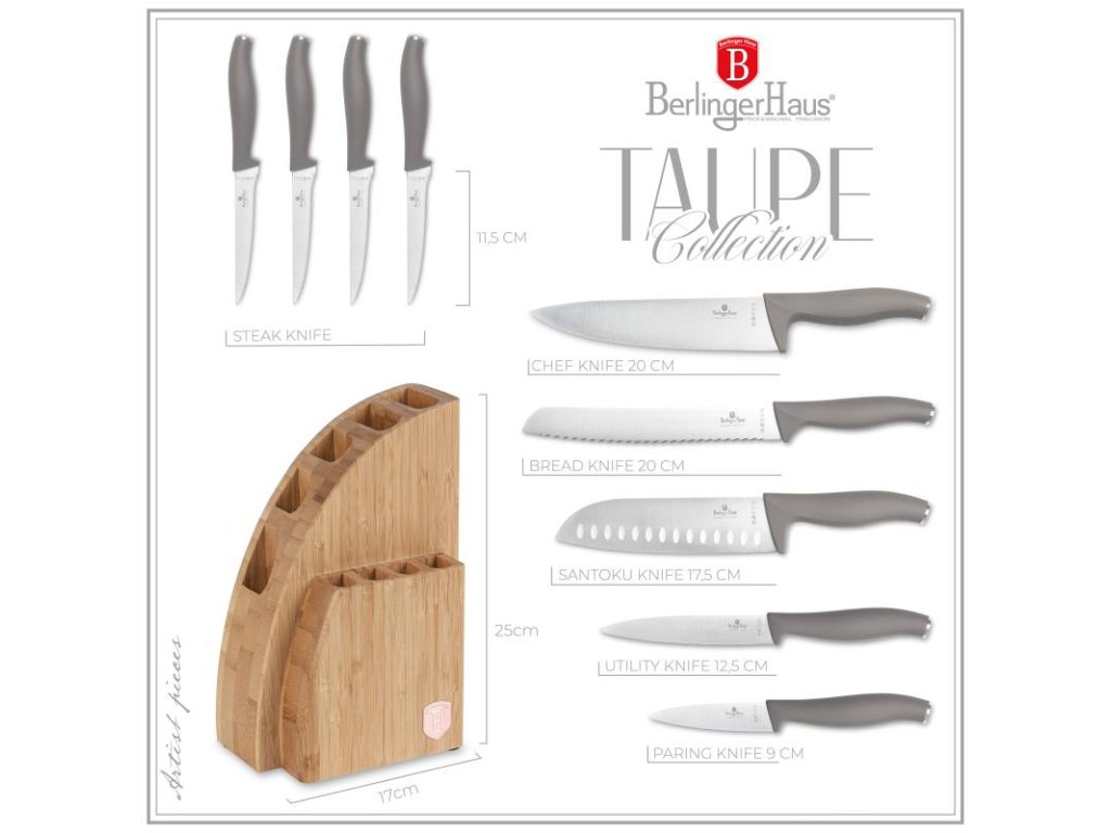 BERLINGERHAUS Sada nožů se stojanem BAMBOO 10 ks Taupe Collection BH-3122