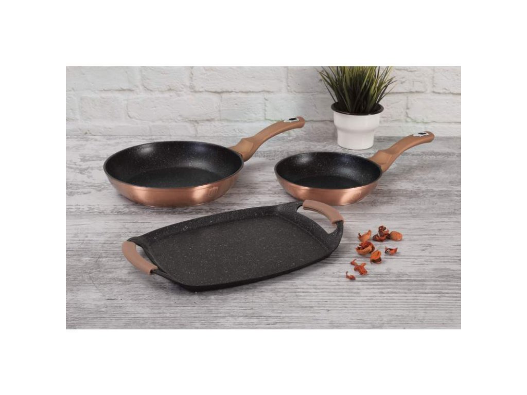 Sada pánví s mramorovým povrchem 3 ks Metallic Line Rose Gold Edition