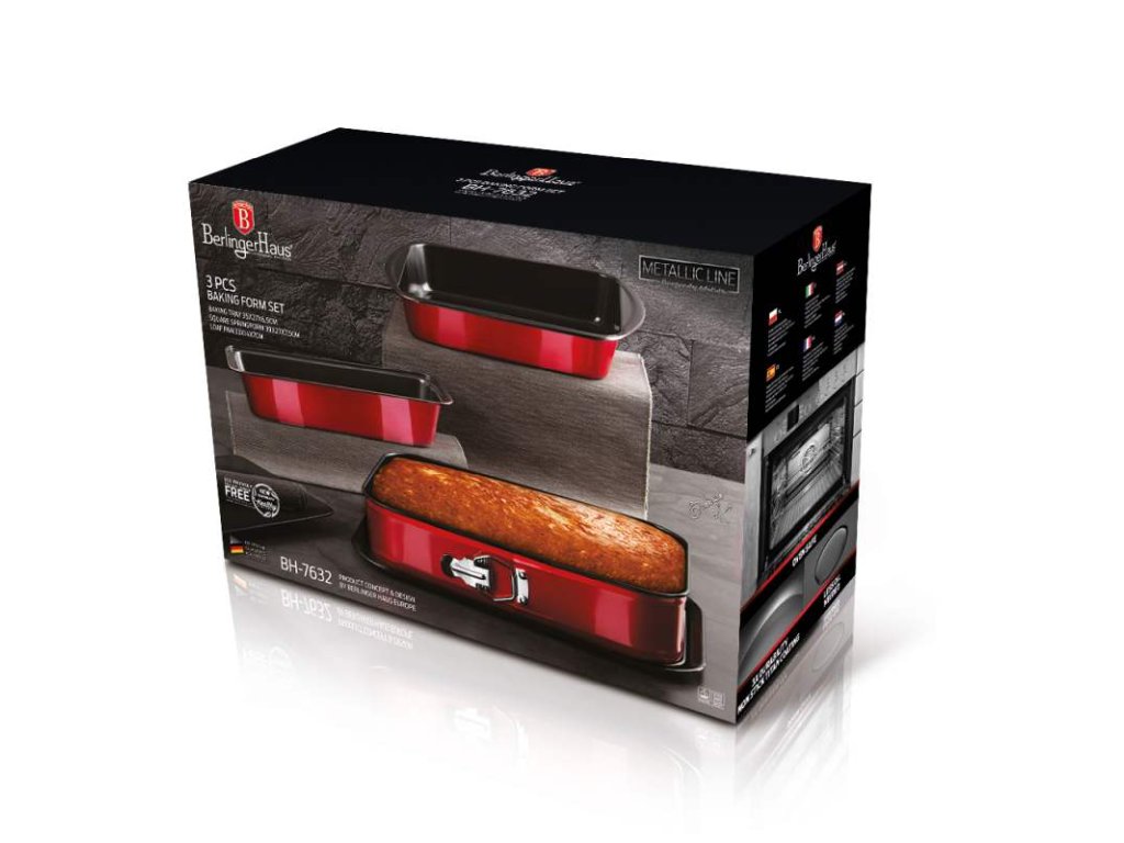 BERLINGERHAUS Sada pečicích forem s titanovým povrchem 3 ks Burgundy Metallic Line BH-7632