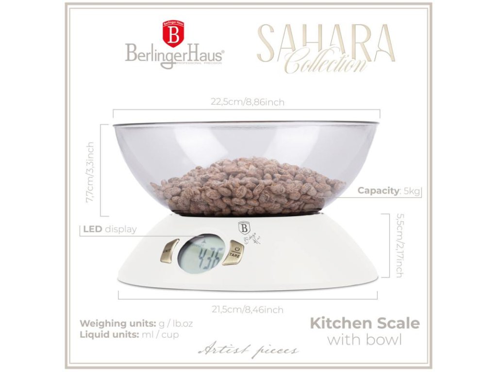 BERLINGERHAUS Váha kuchyňská digitální 5 kg s miskou Sahara Collection BH-9617