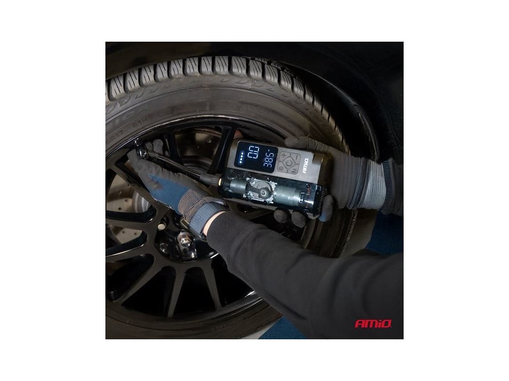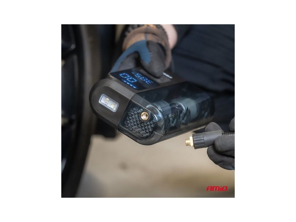 Bezdrátová dobíjecí powerbanka do auta s LED USB-C 40W AMIO Praktický, efektivní a šikovný – tento akumulátorový kompresor do auta je nenahraditelným zařízením na každém výletě. Díky kompaktnímu designu a napájení přes USB-C jej můžete pohodlně nabíjet a mít ho vždy po ruce.Je vybaven digitálním LED displejem, který umožňuje přesné nastavení a ovládání tlaku. Vestavěná LED svítilna usnadňuje používání zařízení po setmění a funkce powerbanky umožňuje nabíjet chytrý telefon nebo jiná mobilní zařízení v případě potřeby.