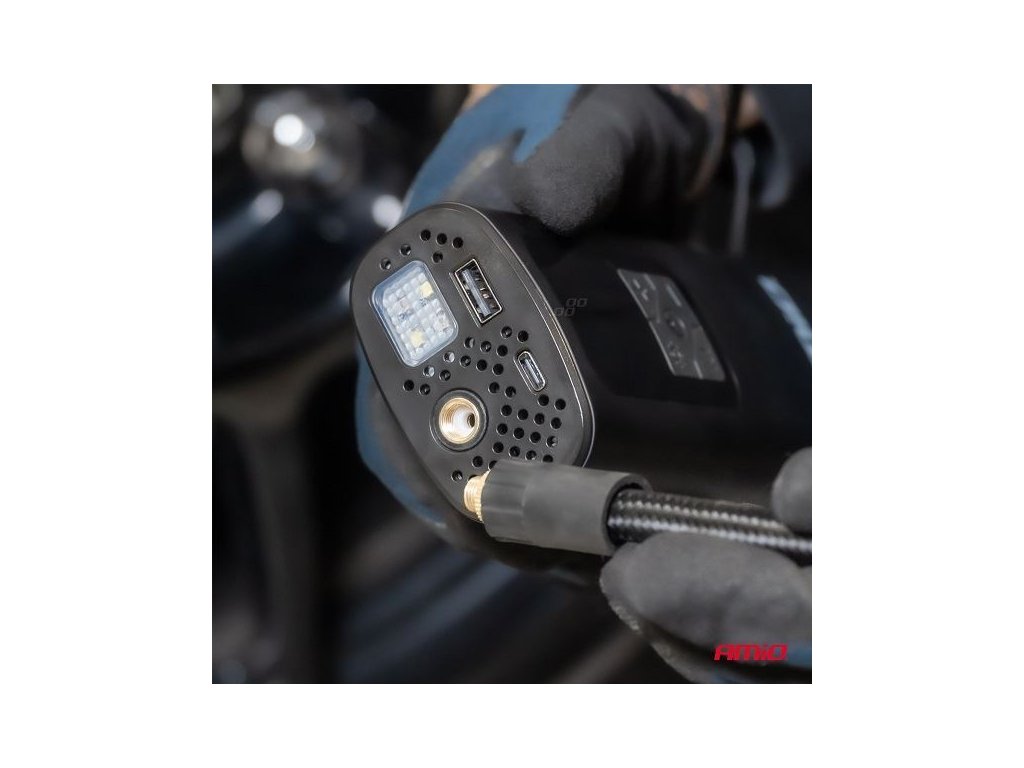 Bezdrátová dobíjecí powerbanka do auta s LED USB-C 40W AMIO Praktický, efektivní a šikovný – tento akumulátorový kompresor do auta je nenahraditelným zařízením na každém výletě. Díky kompaktnímu designu a napájení přes USB-C jej můžete pohodlně nabíjet a mít ho vždy po ruce.Je vybaven digitálním LED displejem, který umožňuje přesné nastavení a ovládání tlaku. Vestavěná LED svítilna usnadňuje používání zařízení po setmění a funkce powerbanky umožňuje nabíjet chytrý telefon nebo jiná mobilní zařízení v případě potřeby.