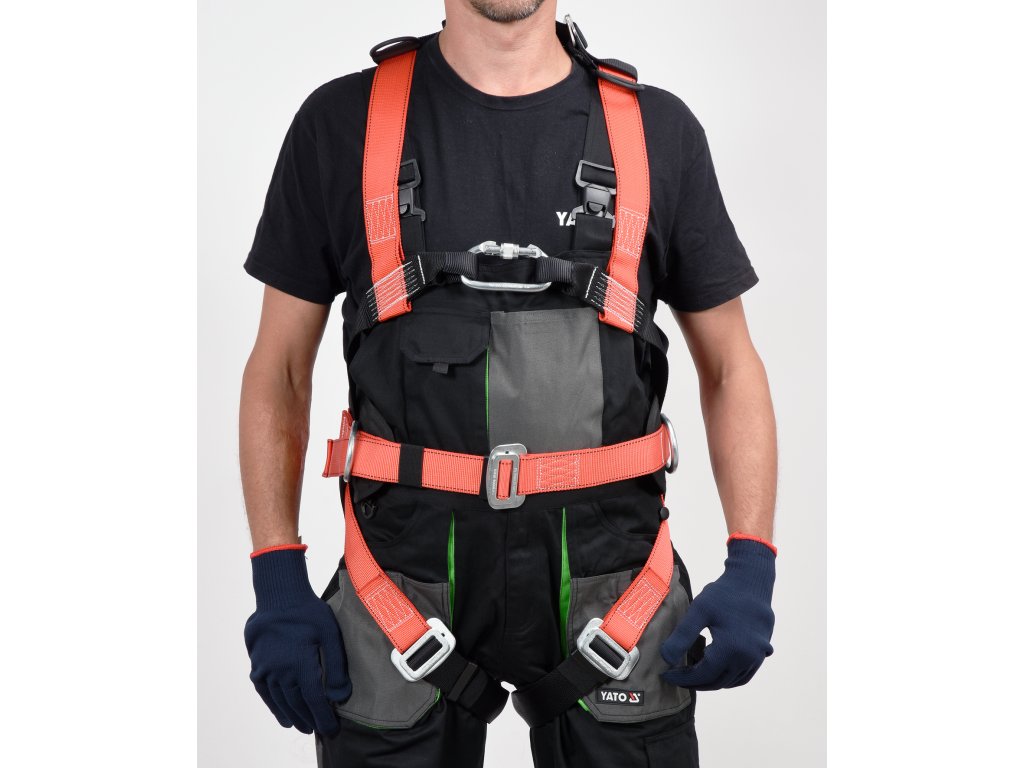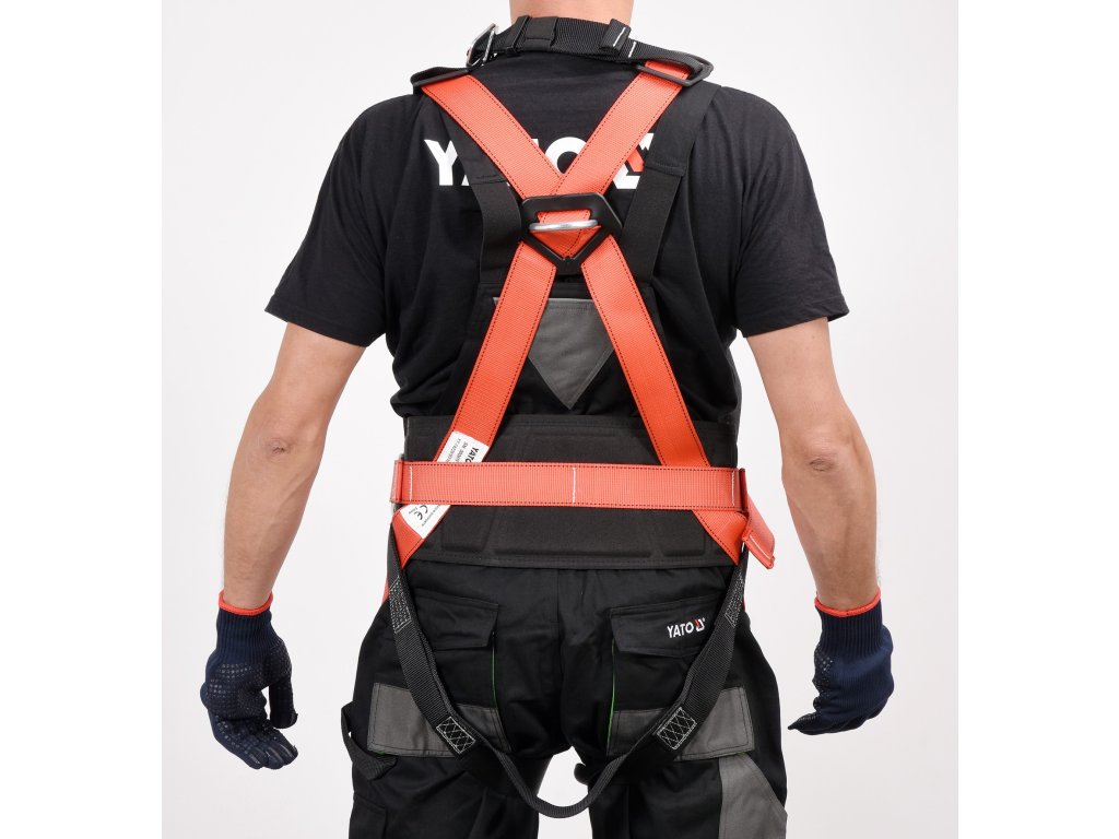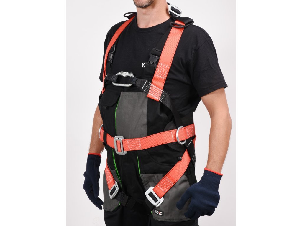 Bezpečnostní postroj YT-74220 s bederním pásem je součástí systému určeného k ochraně lidí před pádem z výšky.