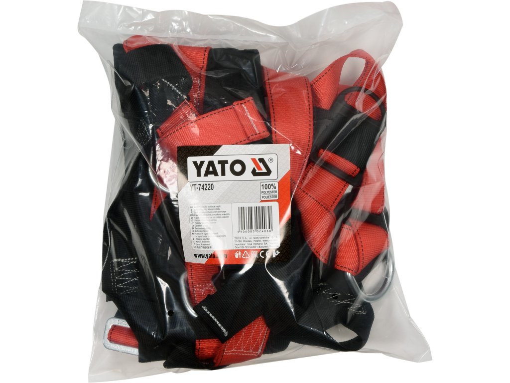 Bezpečnostní pás YT-74220 s bederním pásem byl testován v laboratoři akreditované EU a splňuje požadavky norem EN 361: 2002 a EN 358: 1999.