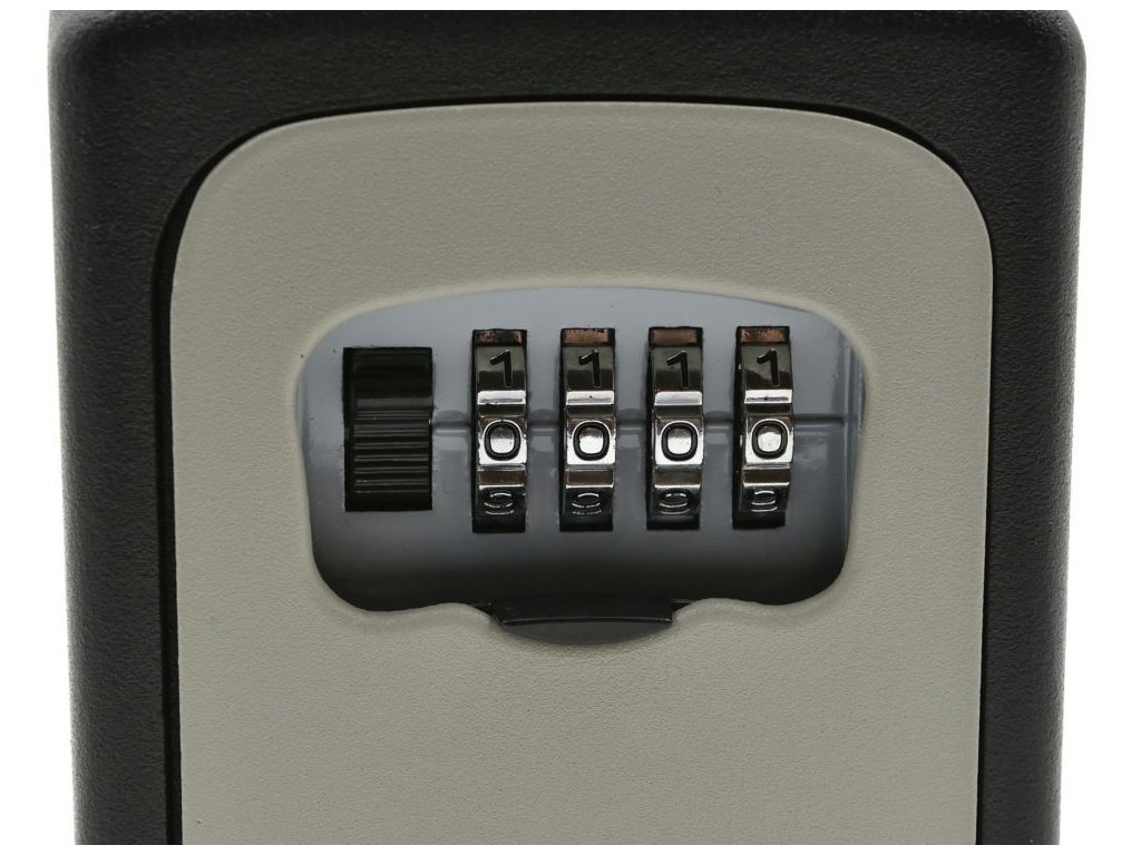 Proč byste si měli jednotlivé klíče nebo náhradní klíč od auta brát všude s sebou a riskovat jejich ztrátu? Bezpečnostní schránka klíče velmi dobře chrání před neoprávněnými osobami pomocí zámku na čtyřmístný kód. Vzniká matematická kombinace 10 000 číselných kombinací, což zlodějům téměř znemožňuje se dostat dovnitř. Momentálně nastavenou čtyřcifernou kombinaci prozraďte pouze osobám, kterým důvěřujete a které jsou k přístupu oprávněny. Chcete-li nastavený kód změnit, stačí nadzvednout malou resetovací páčku na vnitřní straně bezpečnostních dvířek. Poté nastavíte novou kombinaci čísel a stiskněte páčku dolů, čímž se nový kód uloží.