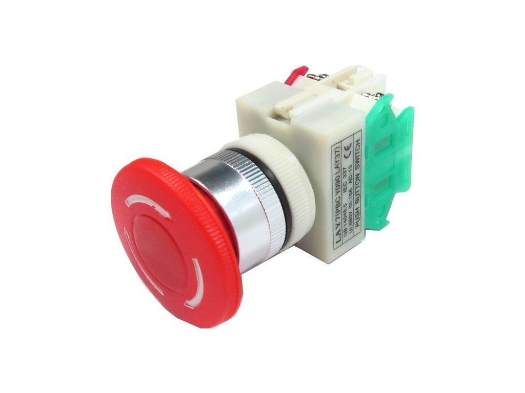 Krytí IP40, do otvoru 22mm, pro uvolnění je střeba pootočit hmatník ve směru šipek.1xspínací kontakt, 1x rozpínací kontakt 230VAC/6A nebo 24VDC/10ADoplňkové parametry