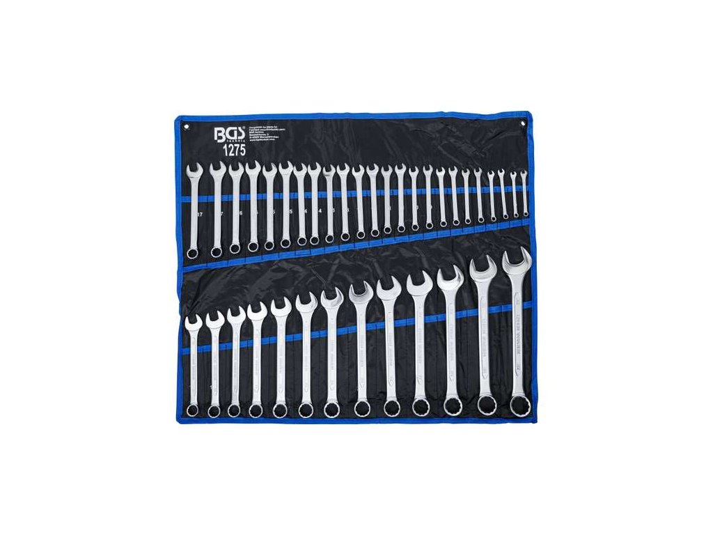 Očkoploché klíče BGS technic, kované za tepla, s leštěnou hlavou pro každodenní použití. Dle DIN 3113ASada 37 klíčů v tetronové rolovací tašce