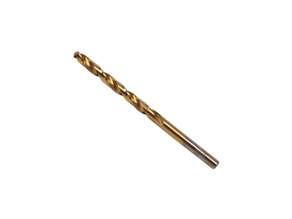 Spirálový vrták HSS-G s válcovou stopkou a TiN povrchem.Plně broušené vrtáky