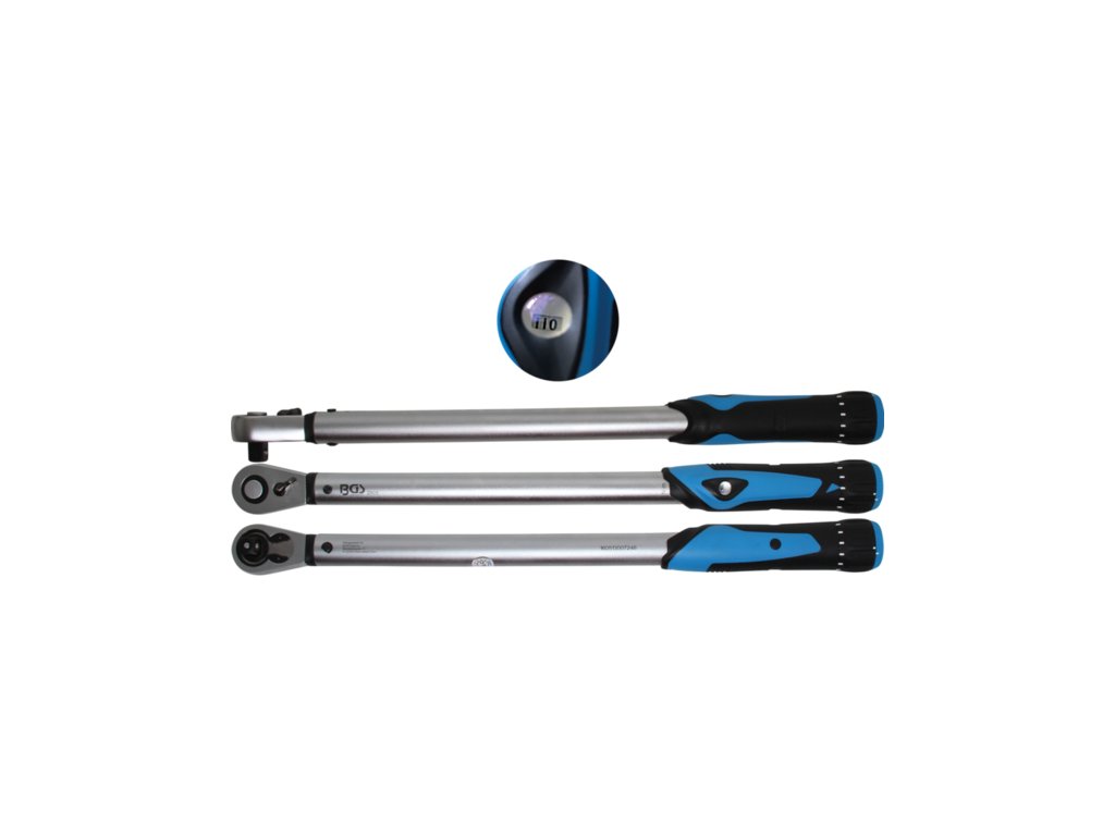 Momentový klíč BGS technic s přepínací 48-zubovou ráčnovou hlavou a jemným nastavením momentu po 0,5 NmReverzibilní ráčna s automatickým uvolňováním včetně signálu