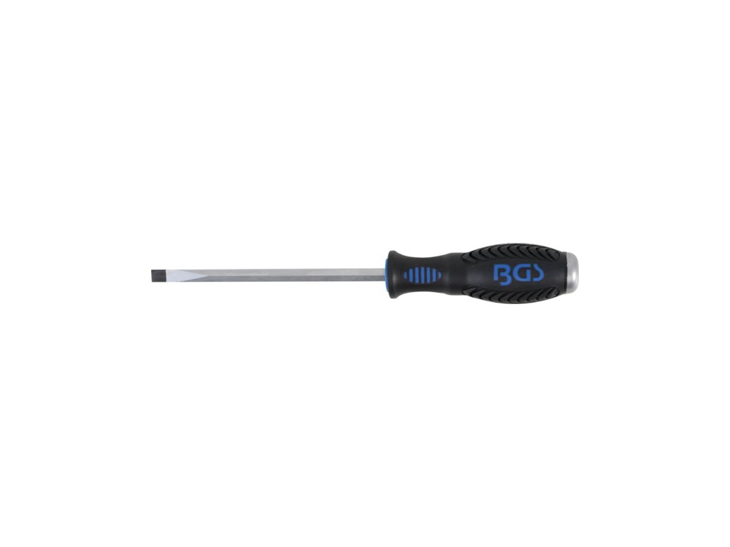 Plochý šroubovák BGS technic s dvoukomponentní rukojetí a 6hranným dříkemMateriál: Chrom-molybdenová ocel