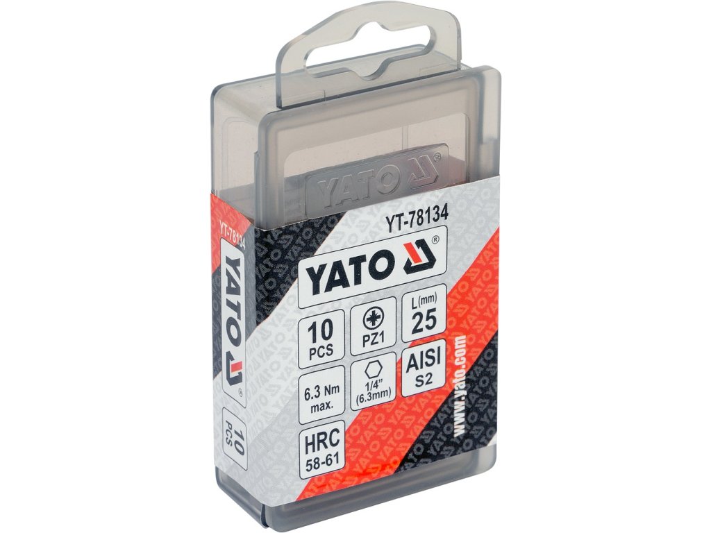 Kvalitní křížové PZ1 bity v sadě 10 kusů, kované do vysoké přesnosti s pískovaným povrchem. Jsou vyrobený z chrom - molybdenové slitiny oceli AISI - S2. Dosahují povrchové tvrdosti 58-61 HRC. Každý bit má velikost upínacího šestihranu 1/4", což je velikost klasického bitu tak, jak ho znáte. Bity svou kvalitou vyhoví náročnému uživateli.