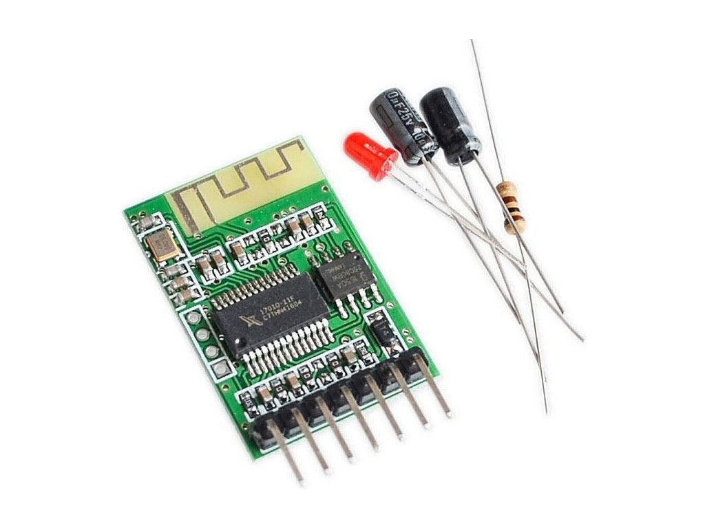 Bluetooth modul pro přenos audia s LED: rychle blikání - není připojeno, pomále blikání - připojeno.<BR/><BR/>**Specifikace:**<BR/>Pracovní napětí 5V<BR/>Dosah: cca 10m<BR/>Výstup stereo audio<BR/>Výstup pro mute<BR/>Rozměry: 30x20mm<BR/><BR/>**Popis výrobku:**<BR/><BR/>**Piny:** <BR/> - Napájení +5V. Rozsah 4,2~5,1V. Přepětí může modul poškodit. <BR/> - GND: zem <BR/> - L+R: Výstup audio stereo. Je vhodné použít oddělovací kondenzátor 1uF <BR/> - Mute: ovládání zesilovače <BR/><BR/> indikátor LED: indikuje tři stavy BT adaptéru. Když není připojeno žádné zařízení, bliká rychle (~0,5s). Připojené zařízení je indikováno pomalým blikáním (~1s)pokud dochází k přenosu zvuku, nebo trvalým svitem pokud je přenos neaktivní (v tomto stavu je naopak aktivní výstupní signál MUTE). <BR/>RESET: krátkým spojením se zemí je vyvolán reset modulu. <BR/><BR/>**Další doporučení:**<BR/>Napájení modulu je citlivé na vysokofrekvenční rušení, doporučuje se pro napájení použít lineární stabilizátor napětí (např. 78L05) doplněný o blokační kondenzátory. Pokud je použitDC/DC či AC/DC měnič nebo spínaný zdroj, je vhodné doplnit LC filtr. Rušení po napájení může způsobovat nesprávné připojení Bluetooth. <BR/>Uzemnění: pokud dochází při připojení či přenosu zvuku k rušení je třeba překontrolovat zemnící vodiče ev. zvolit zapojení zemnění tzv. do jednoho bodu. Pozornost je třeba také věnovat připojovacímu konektoru, zvolit vhodný typ precizního konektoru nebo provéstpřímé zapájení do desky (ev. na jednotlivé piny). <BR/>Umístění antény BT: anténa Bluetooth jecitlivá na VF frekvence nebo silné elektromagnetické pole. Pokud možno, umístit modul co nejdále od desky koncového zesilovače, spínaného zdroje, neumisťuj ji také v blízkosti kovových krytů či chladičů.<BR/>Krabička, zakrytování: vzhledem k tomu, že plášť kovového krytu je efektivní stínění signálu Bluetooth,může kovový kryt zeslabit signál Bluetooth natolik, že nebude možné sestavit spojení (nalézt toto zařízení na Tvém mobilním telefonu či jiném zdroji signálu). Toto je třeba zohlednit při použití BT modulu. <BR/>Zapojení LED indikátoru stavu: vzhledem k tomu, že proudová zatížitelnost tohoto výstupu je nízká, doporučuje se pro přímé připojení použít červenou LED doplněnou o odpor 100ohm, nebo výstup doplnit o tranzistor (NPN).<BR/>Doplňkové parametry