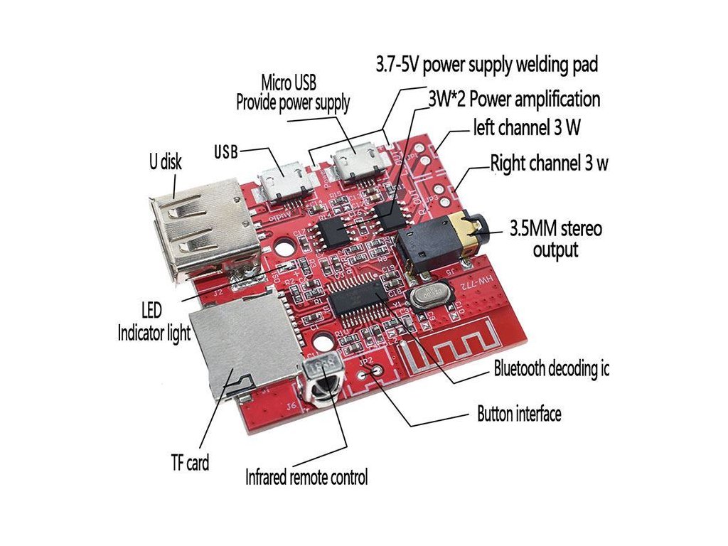 Bluetooth 4.1, přehrávač MP3+zesilovač 2x3W s D.O., modul HW-772