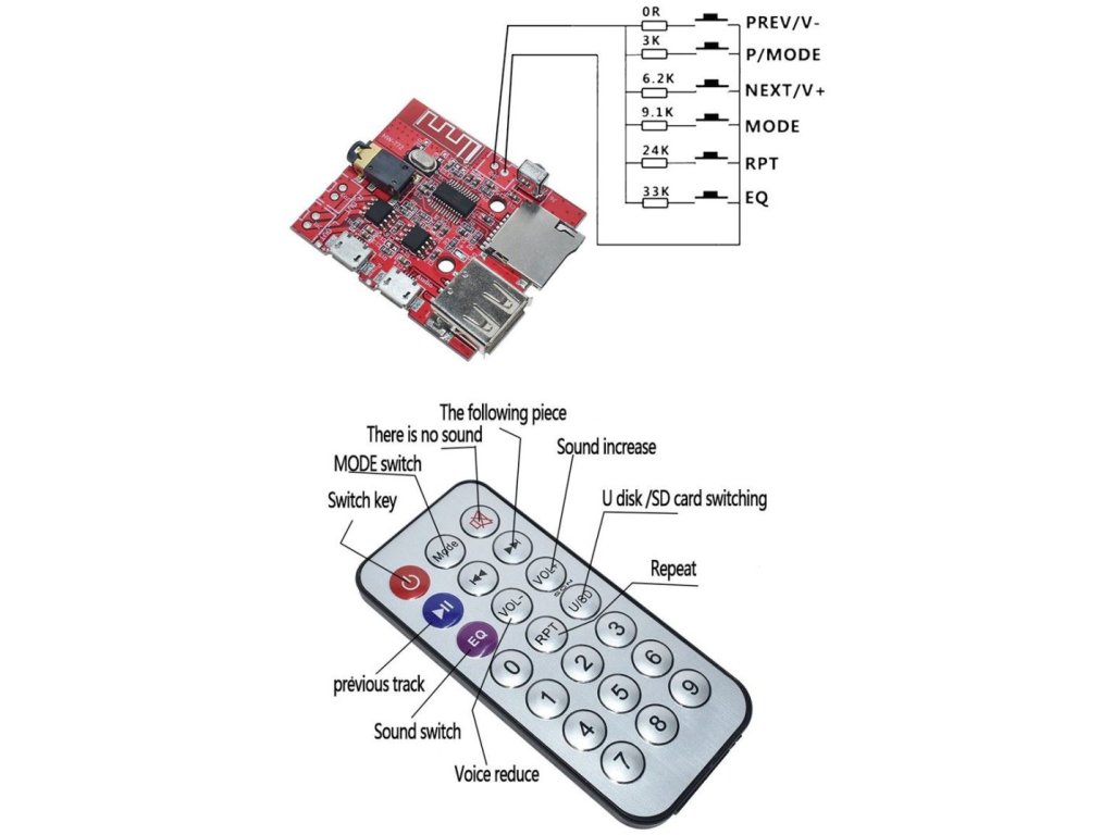 RežimBluetooth je výchozí, zapnutý, když na desce není nainstalován žádný U disk nebo TF karta Přepínání režimů pomocí tlačítkového rozhraní nebo IR dálkového ovládání.