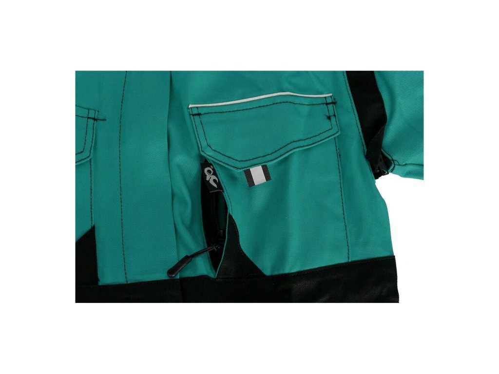 skrytá náprsní kapsa na zip, jednoduché boční kapsy, spodní část na bocích do gumy, reflexní doplňky.