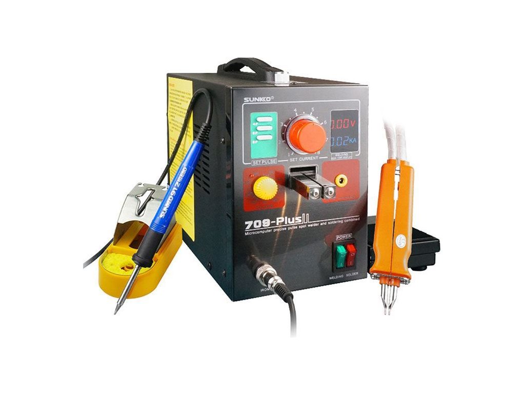 SUNKKO 709PLUS je bodová svářečka pro bodové svařování akumulátorů do bateriových akupacků pomocí niklových plíšků. Svařovat lze pomocí dvou bodů v těle svářečky nebo s pomocí kleští. Součástí přístroje je také mikropájka 50W s regulací teploty.**Specifikace:**