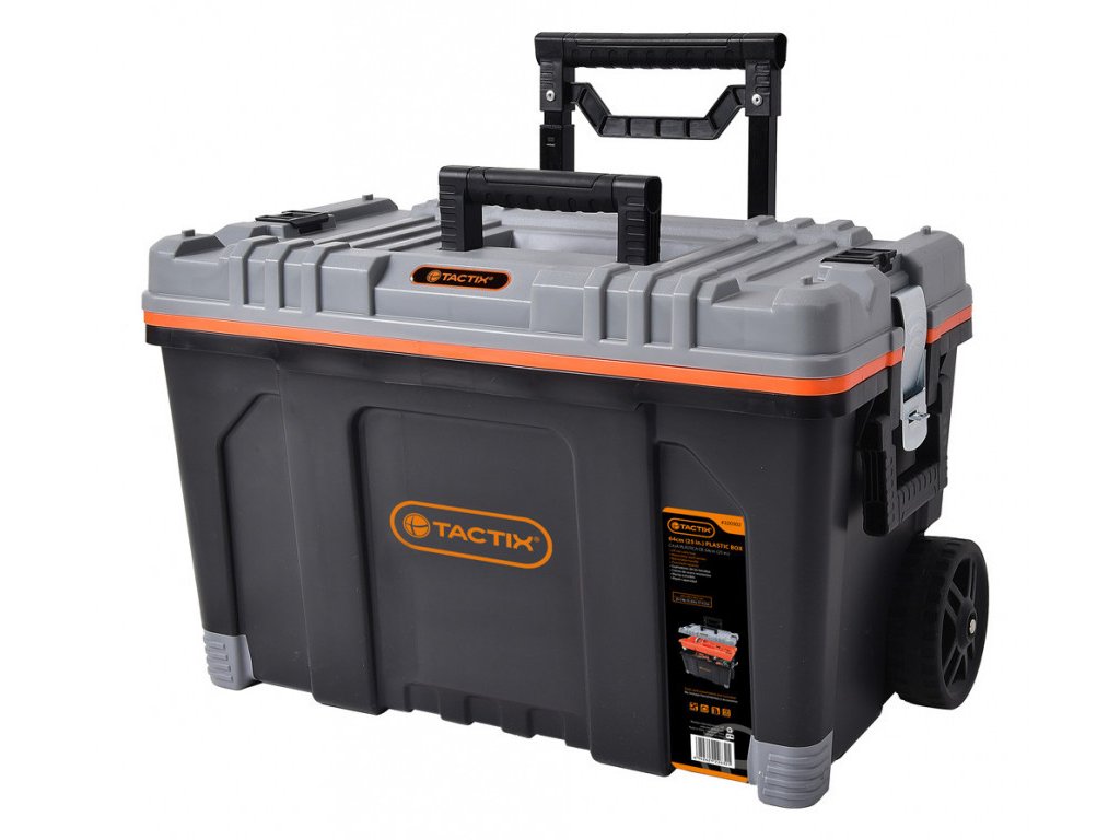 Plastový box vhodný pro uskladnění nářadí a pro jeho snadný přesun. Pro přesun je box vybavený 3-mi madly a teleskopickou rukojetí až do výšky 90 cm.