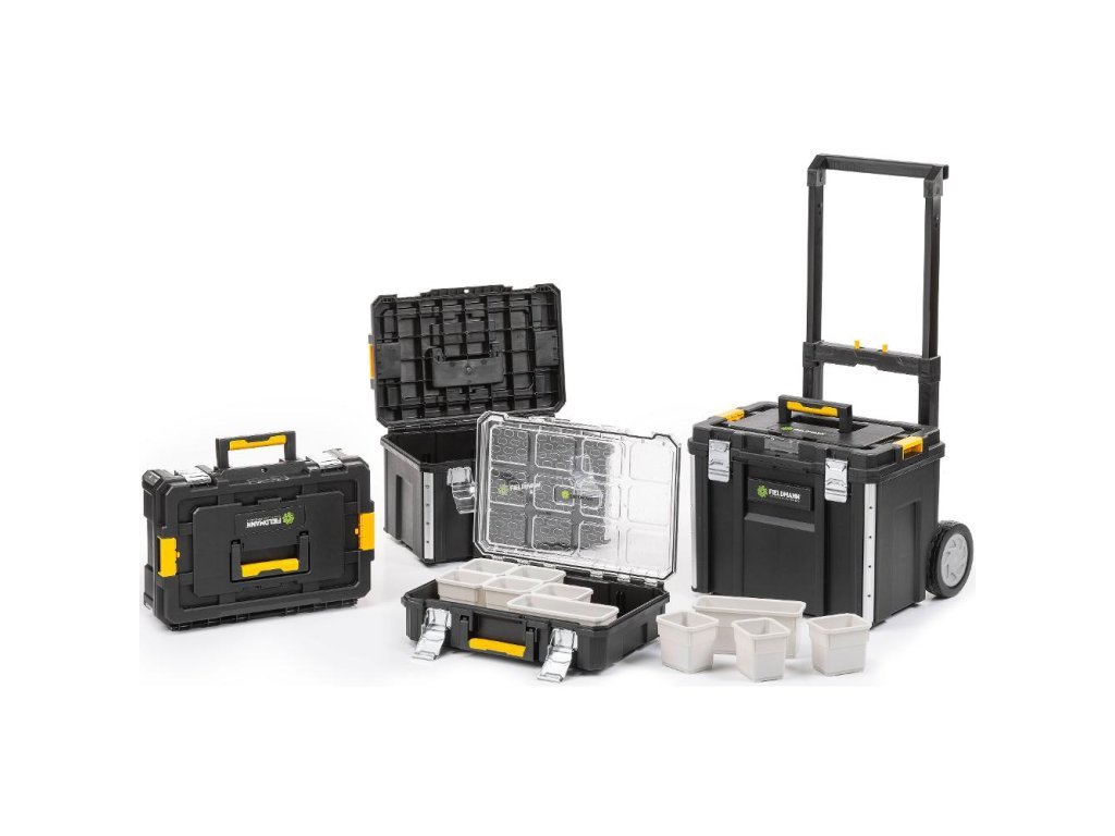 Poskládáním všech modulů vznikne praktický a přehledný úložný systém, který umožňuje efektivní organizaci a snadnou přepravu veškerého nářadí a příslušenství.