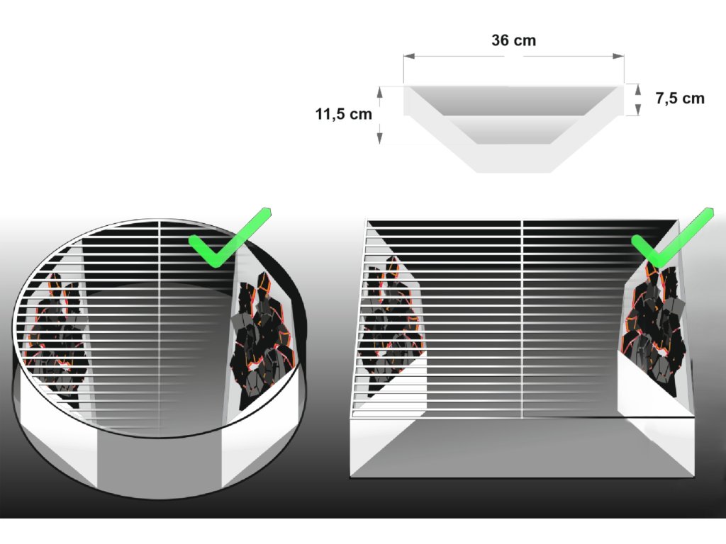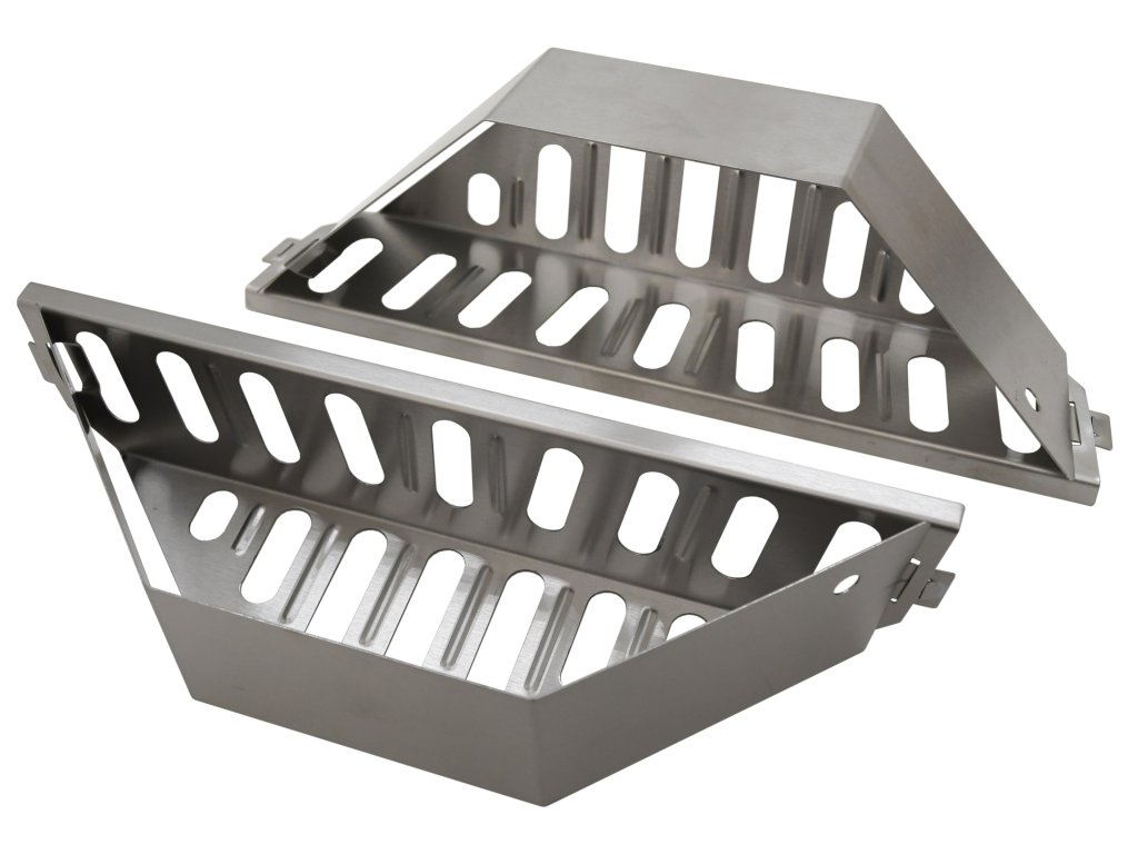 Sada obsahuje 2ks těchto boxů z nerezové oceli. Každý box má rozměry 36 x 11,5 x 7,5 cm. Je vhodný jak do hranatých tak kulatých grilů patřičných rozměrů.