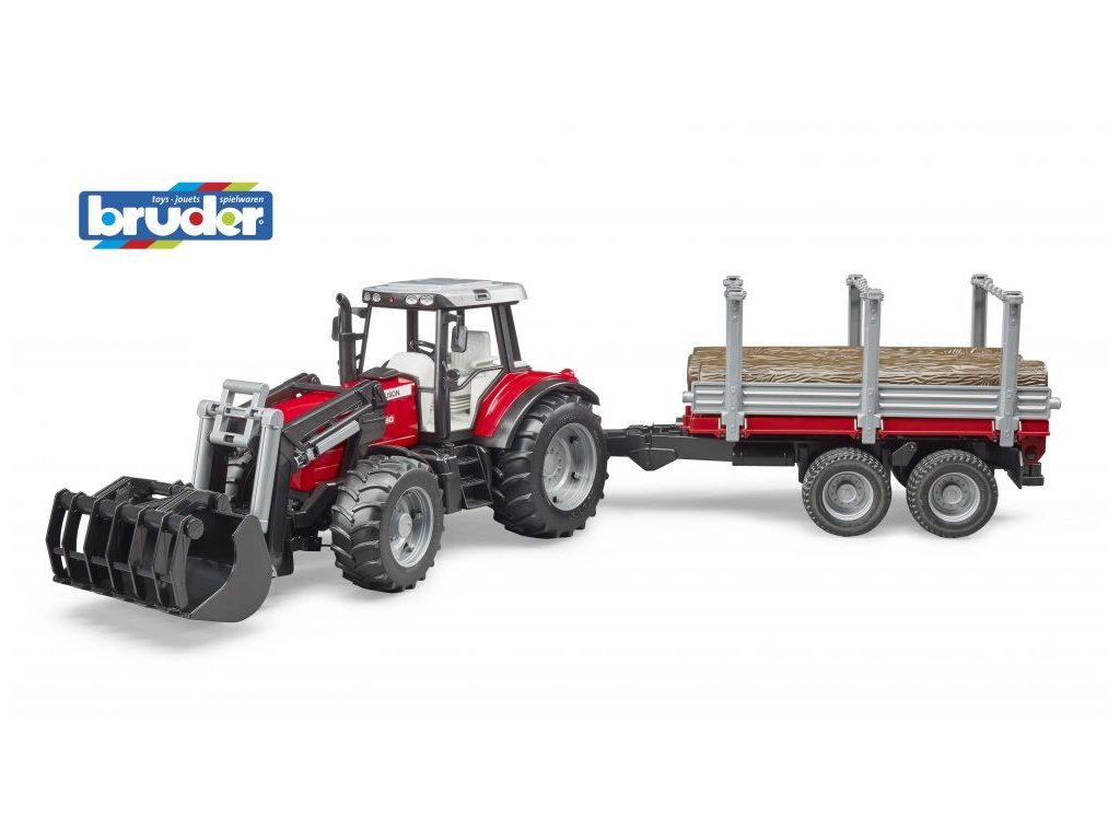 Bruder 2046 Massey Ferguson 7480 s před. nakladčem a přívěsem na klády 2213