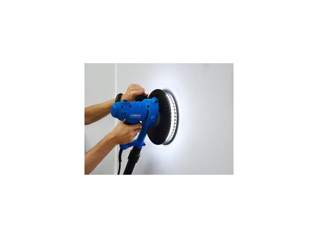 Bruska na sádrokarton je určena k broušení povrchu zdí a stropů uvnitř i vně suchých staveb za účelem např. zabroušení zatmelených sádrokartonových desek, zahlazení míst s oloupaným nátěrem, odstranění zbytků tapet a lepidla na zdech atd.. Vybaveno ovládáním rychlosti, systémem pro upevnění na suchý zip a systémem odsávání prachu s vakem. Navíc osvětlení LED o 360 ° usnadňuje osvětlení pracovní plochy.