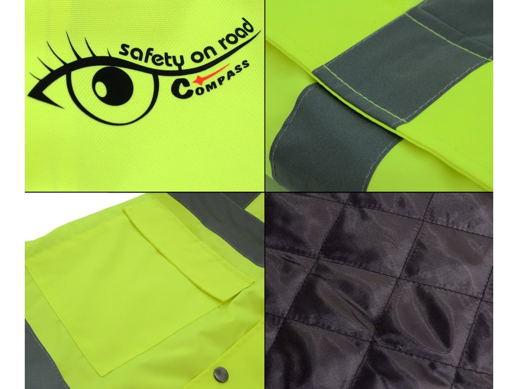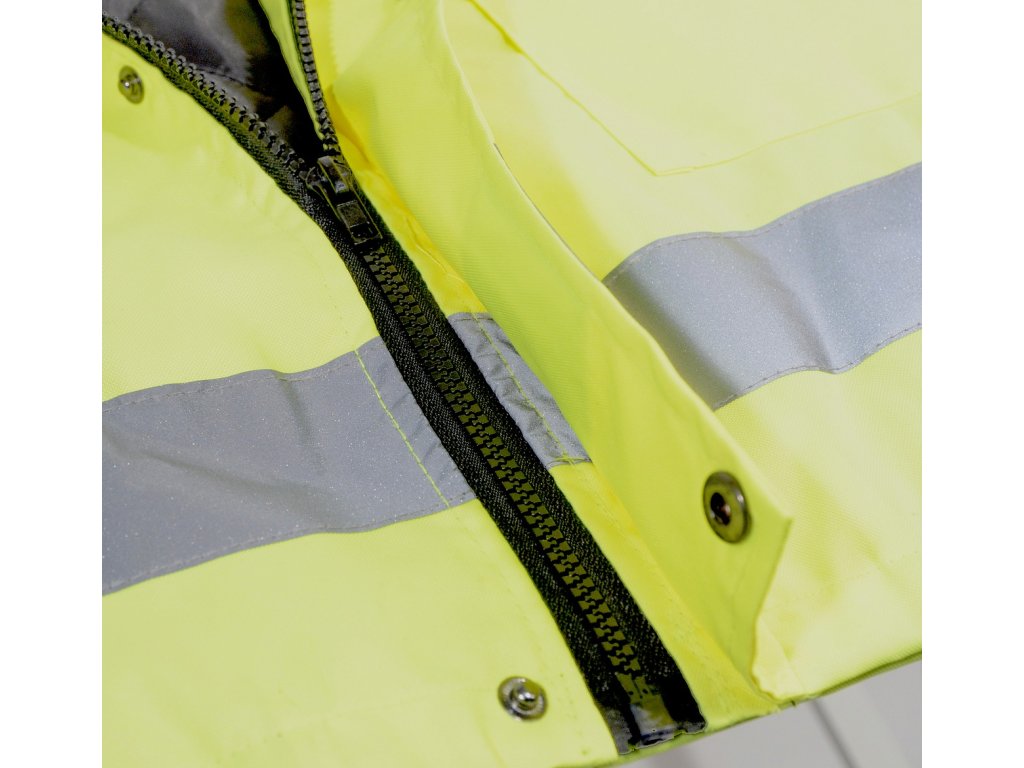 Reflexní pruhy na rukávech, přes ramena a na spodní i dolní části bundy zajišťují vysokou viditelnost ze všech stran.