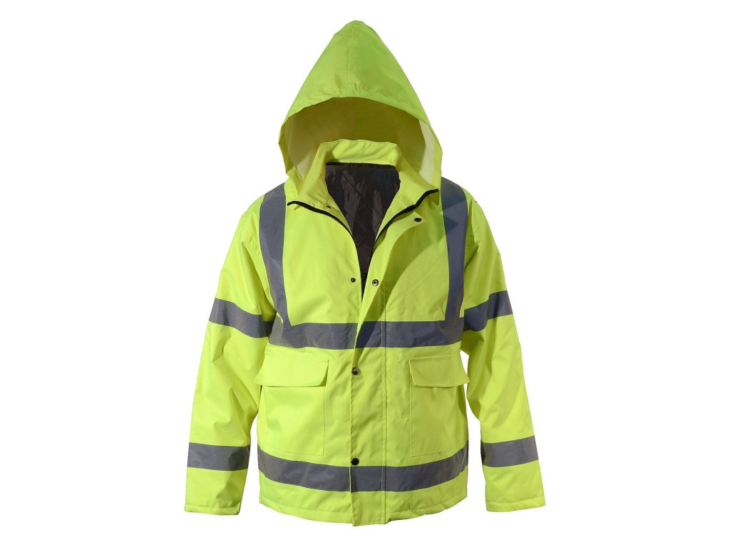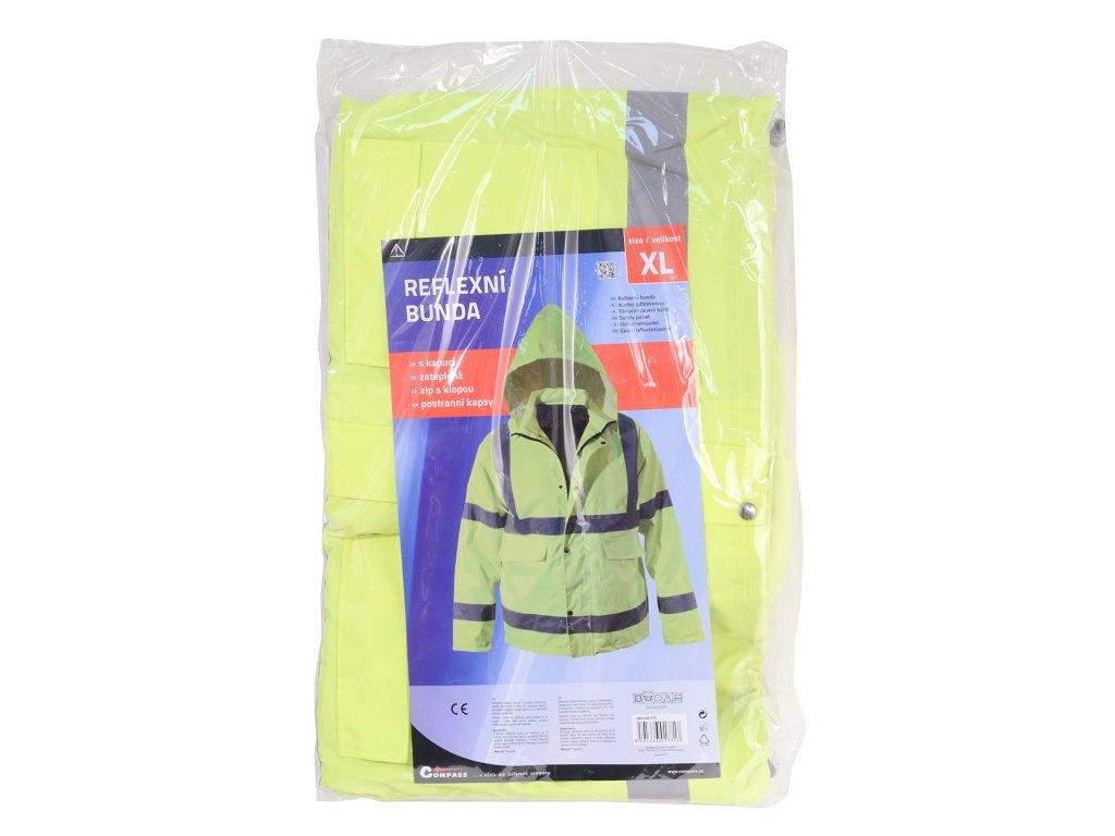 Zateplená reflexní bunda s vysokou viditelností, odolná proti vodě a větru.