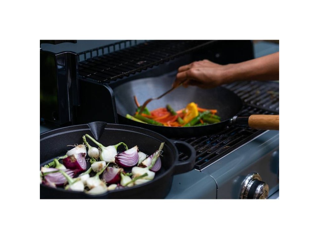 Pánev Wok z vysoce kvalitní karbonové oceli s nepřilnavým povrchem je ideální pro přípravu tradičních pokrmů asijské kuchyně. Dlouhá dřevěná rukojeť pro snadné držení. Součástí balení jsou i dvě vařečky. Kompatibilní s roštem Culinary Modular. Kompatibilní s grily řady 4 Series Classic L, 4 Series Woody L, 3 Series Classic L.Rozšiřte svoji venkovní kuchyň s Campingaz® příslušenstvím Culinary Modular!
