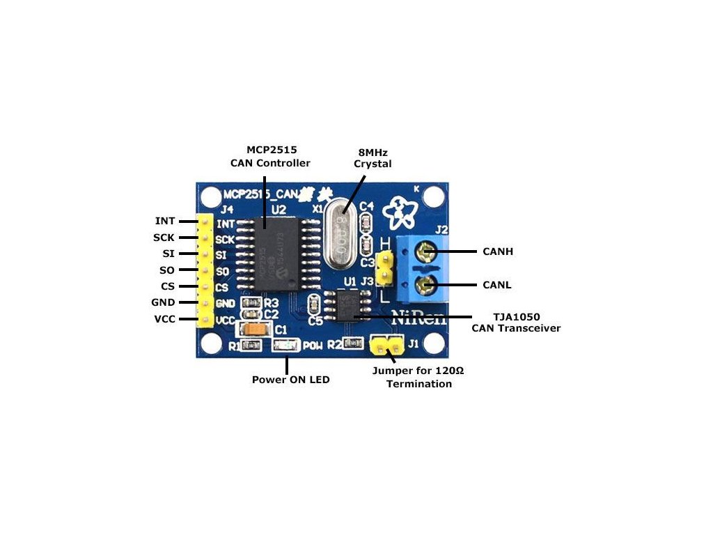 CAN bus modul MCP2515 TJA1050 pro Arduino **Specifikace:**Podporuje CAN V2.0 B