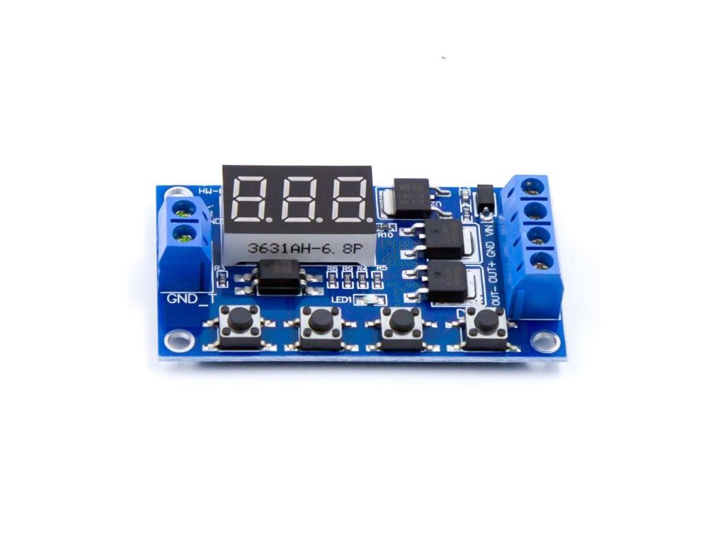 Časovač - programovatelný časový spínač s tranzistory MOSFET Univerzální časový spínač s výstupem MOSFET 12-24V DC a širokou škálou nastavení.**Pracovní režimy:**