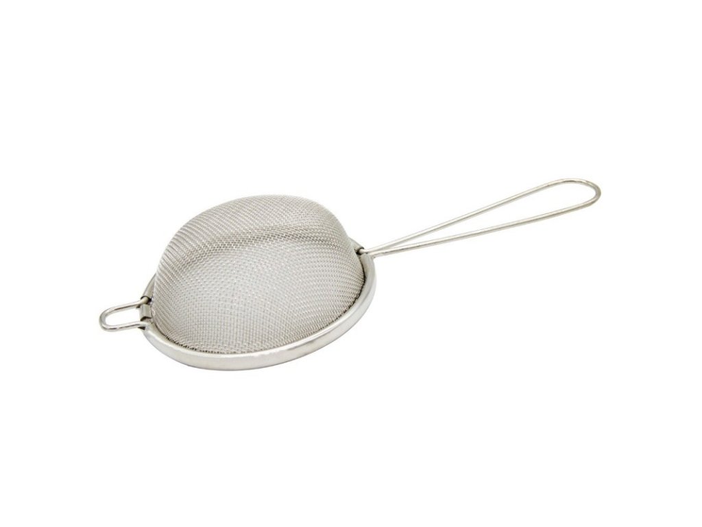 Kvalitní pevný nerezový cedník s ručkou, průměr 8.5 cm, délka s ručkou 18 cm, výška 3 cm, délka háčku 1.5 cm.Cedník je vybavený háčkem na zavěšení na hrnec nebo jinou nádobu.