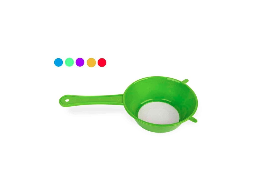 Plastový cedník průměr 7.5 cm s jemným sítkem.