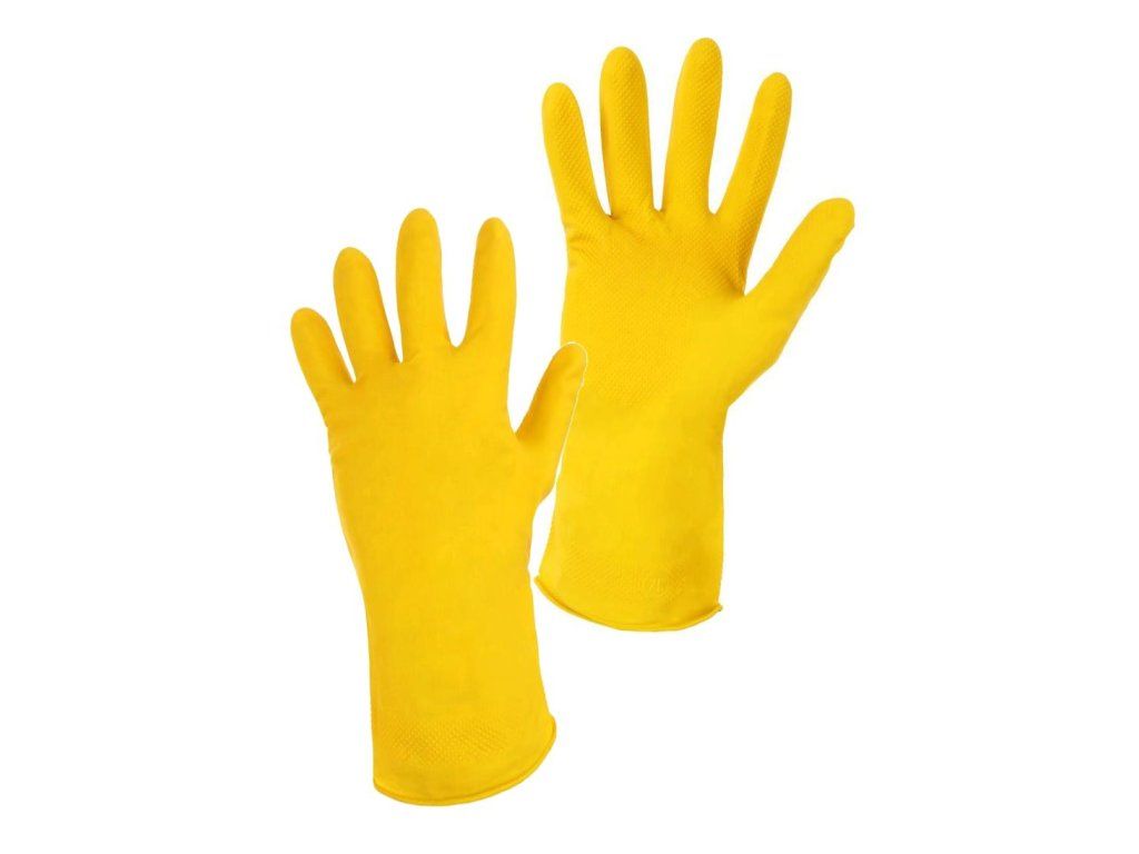 Celomáčené rukavice s velurovou úpravou vnitřního povrchu a vnějším reliéfním vzorkem na dlani a prstech.