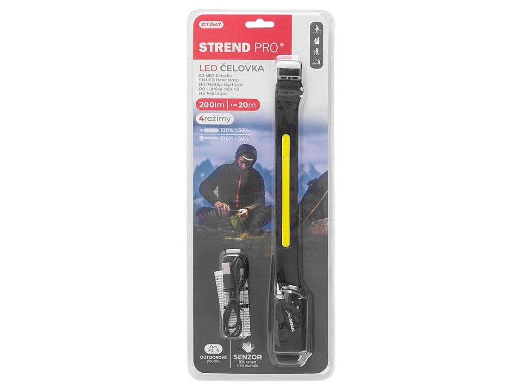 Čelovka Headlight H4034, LED+XPE, 200 lm, 1200 mAh, USB nabíjení, senzor pohybu