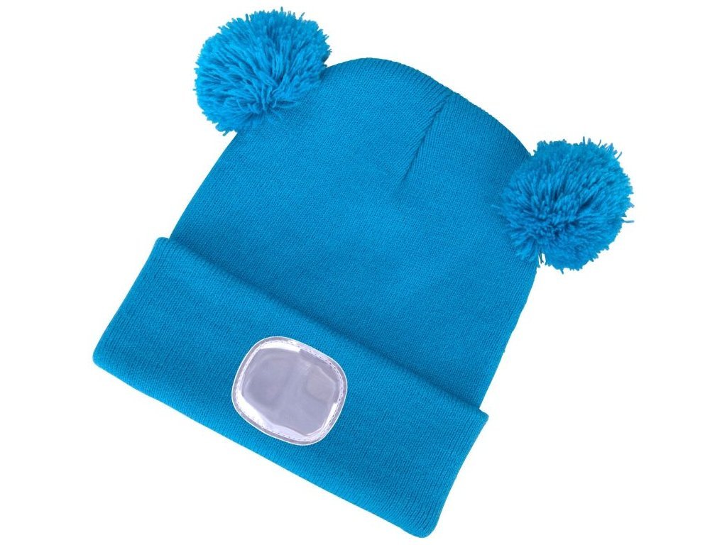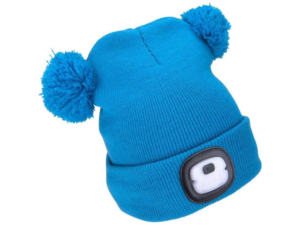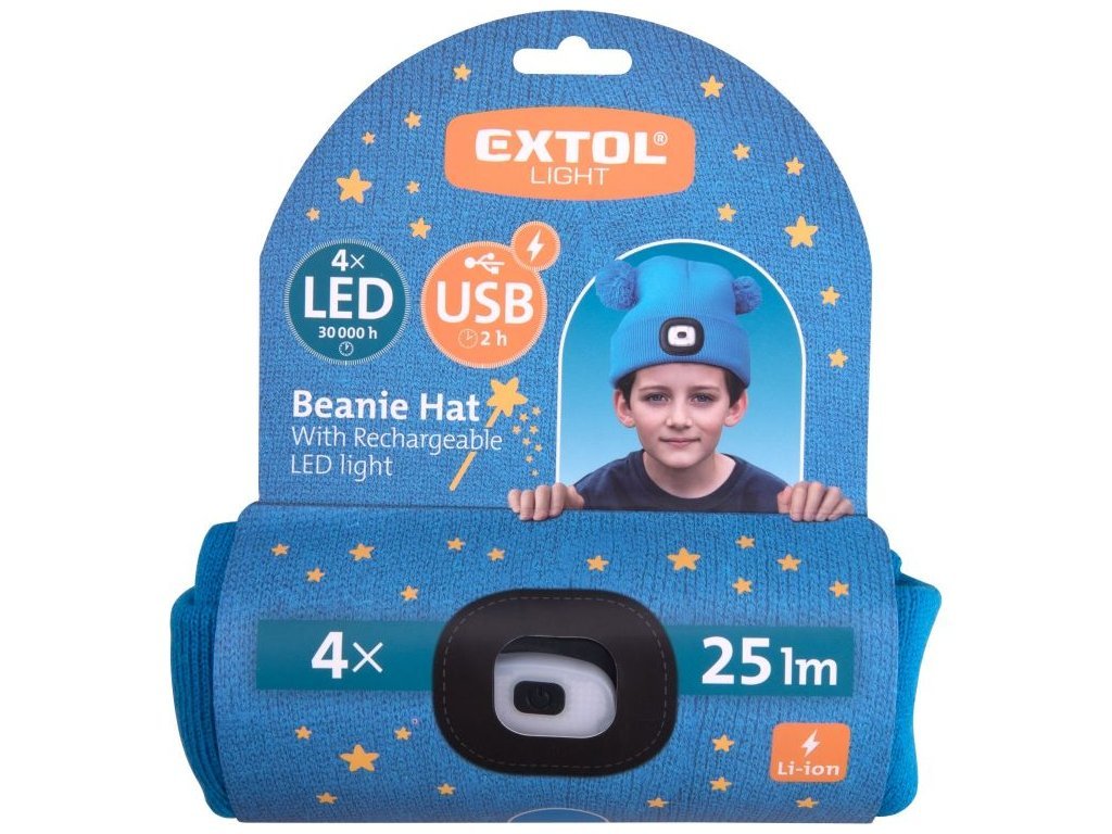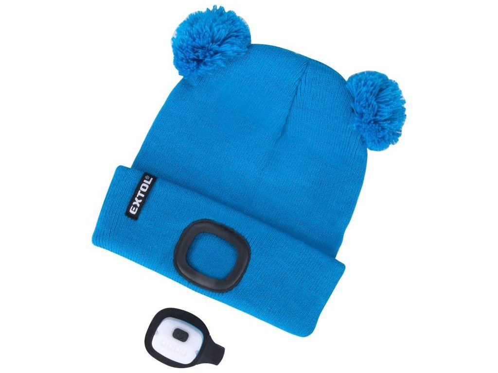 Čepice dětská s čelovkou 4 x 25 lm USB nabíjení modrá s bambulemi EXTOL LIGHT