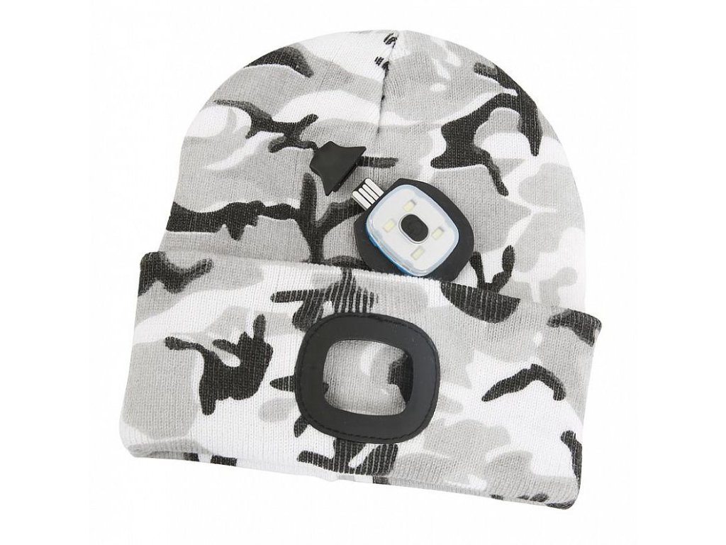 Čepice LED, 4x SMD LED, USB nabíjení, kamufláž šedá, uni