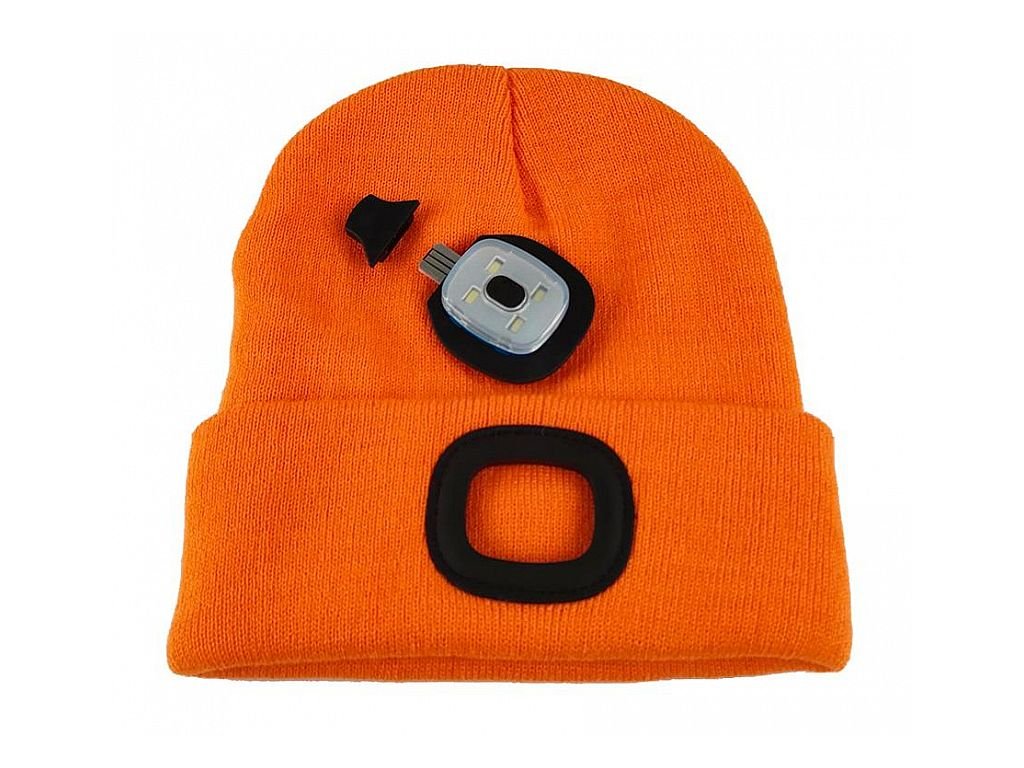 Čepice LED, 4x SMD LED, USB nabíjení, oranžová, uni