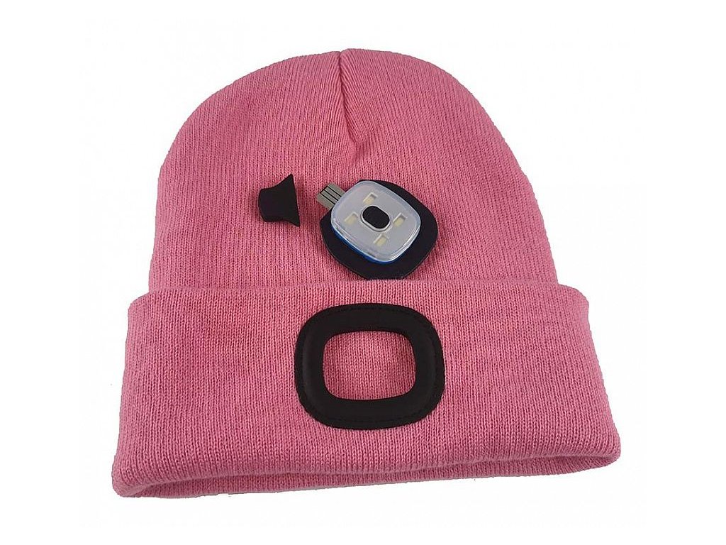 Čepice LED, 4x SMD LED, USB nabíjení, růžová, uni