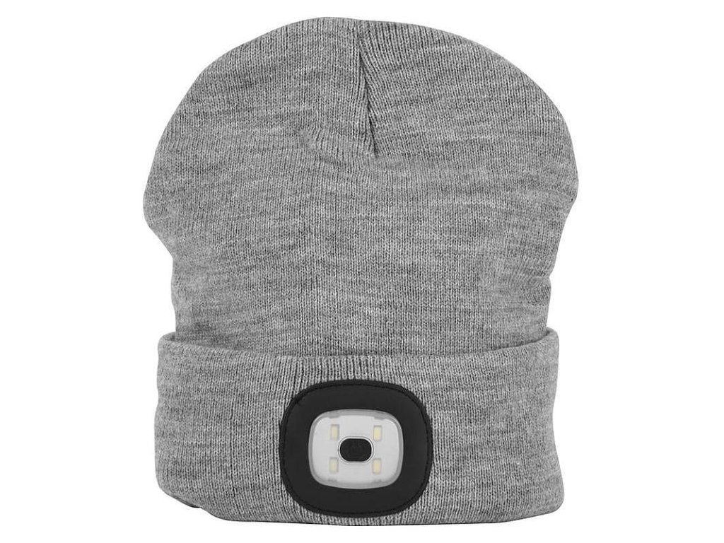 Čepice LED, 4x SMD LED, USB nabíjení, šedá, uni